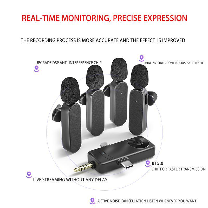 1-to-4 Portable Wireless Microphone Set – Rechargeable Professional Mic Kit for Live Streaming & Podcasting