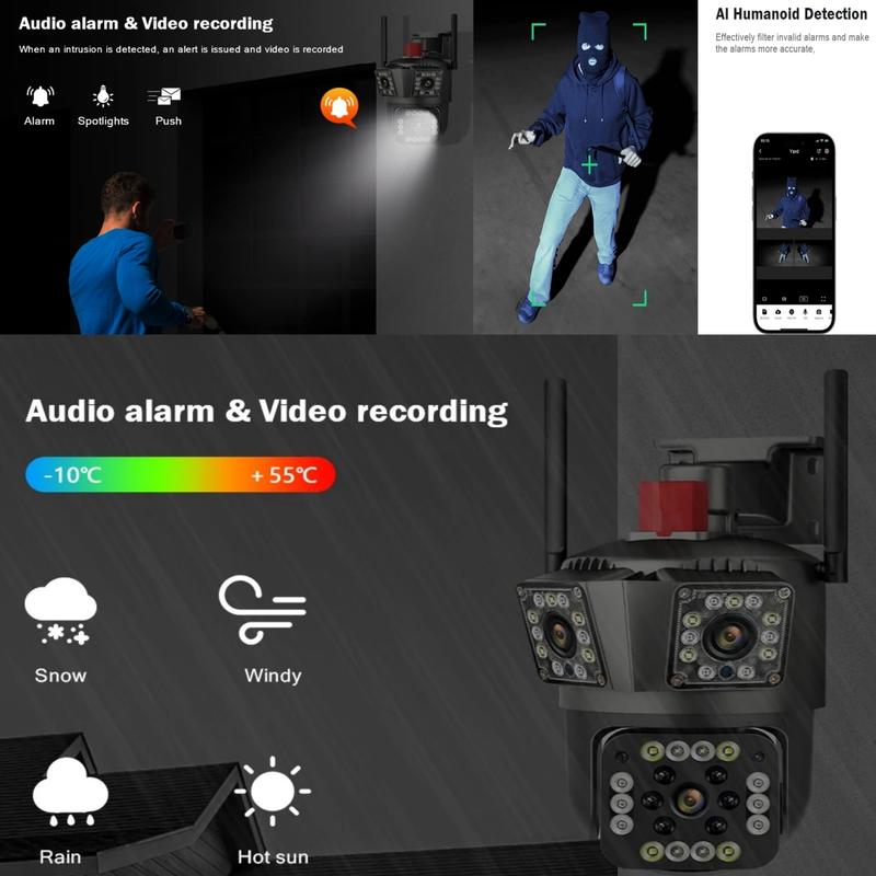 Enhance your home security with this 360° rotatable wireless outdoor camera. Equipped with color night vision, motion detection, and two-way talk, it provides full protection day and night.