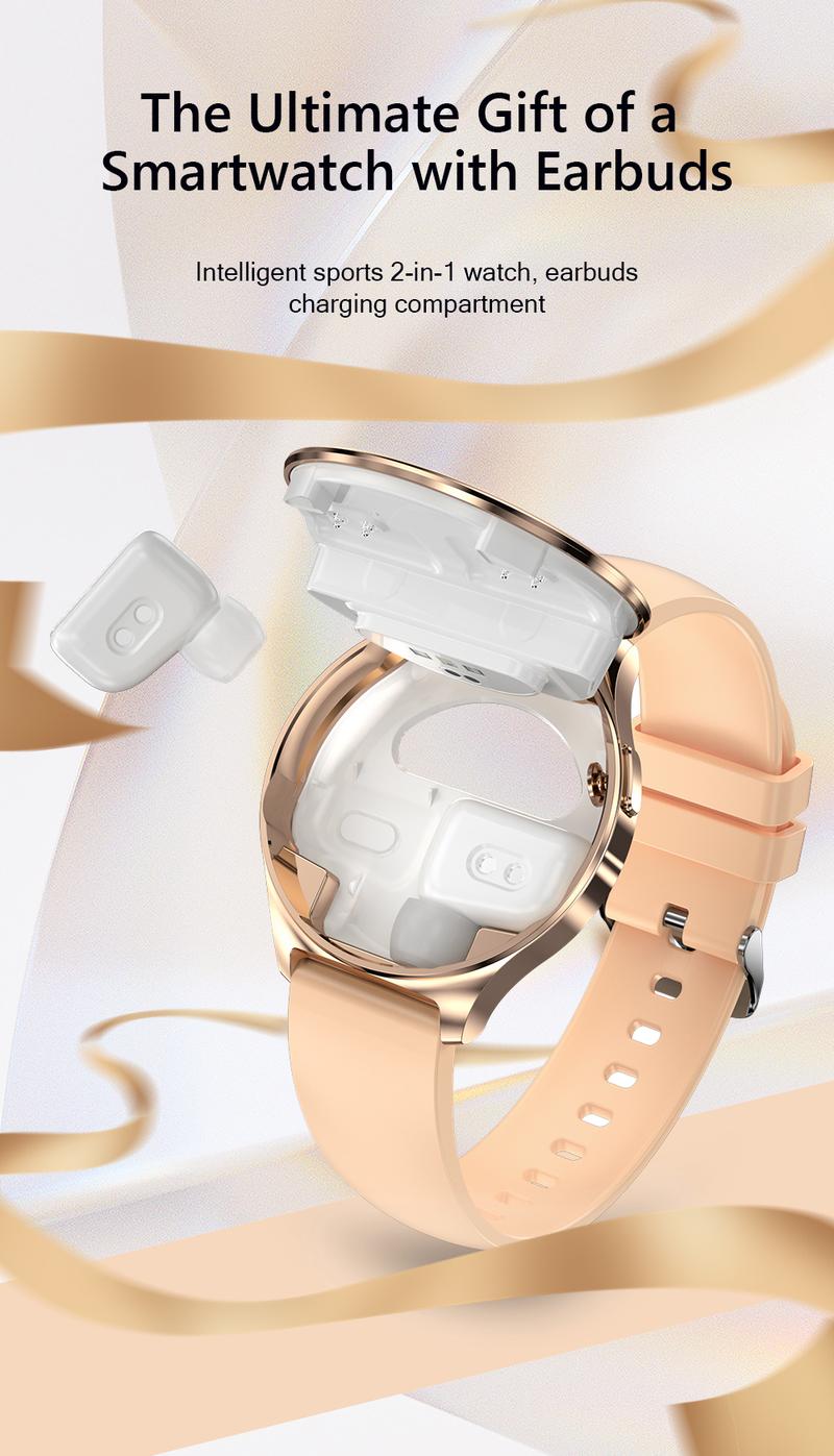 2-in-1 Smartwatch & Earbuds – Kombinasi smartwatch modern dengan TWS earbuds bawaan untuk kenyamanan sehari-hari.