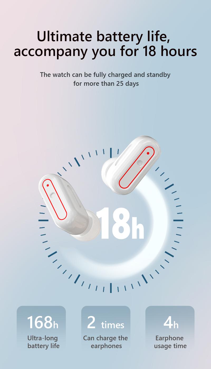 - TWS Bluetooth/Headphones/Health Monitoring/Sports Watch Fitness Tracker in one device.