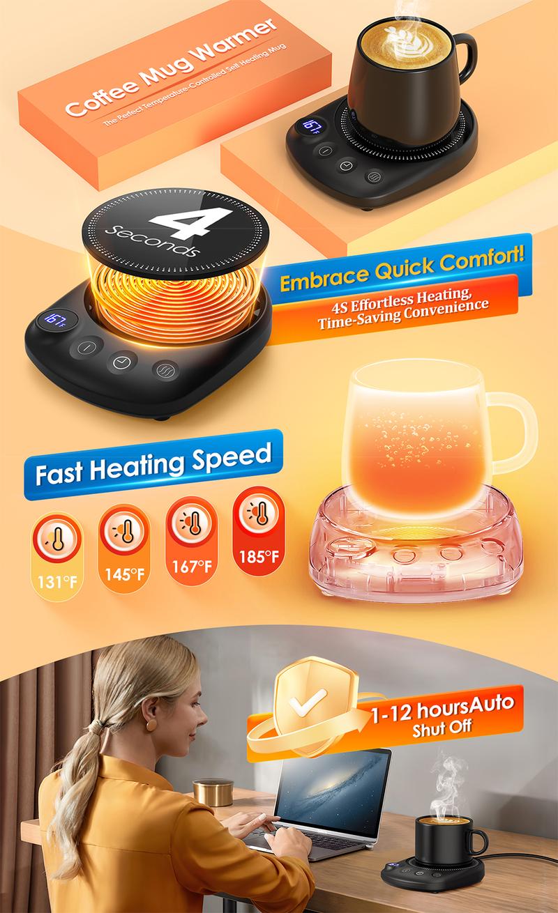 - 【Unparalleled Heating Speed】Experience unmatched heating efficiency with our coffee warmer, boasting the market's fastest heating speed and highest temperature capabilities. Our coffee warmer ensures that every sip is as satisfyingly warm as the first. Whether you're enjoying your morning coffee, tea, hot chocolate, or any other beverage, you can rely on our coffee warmer to provide you with a delightful and convenient experience.
