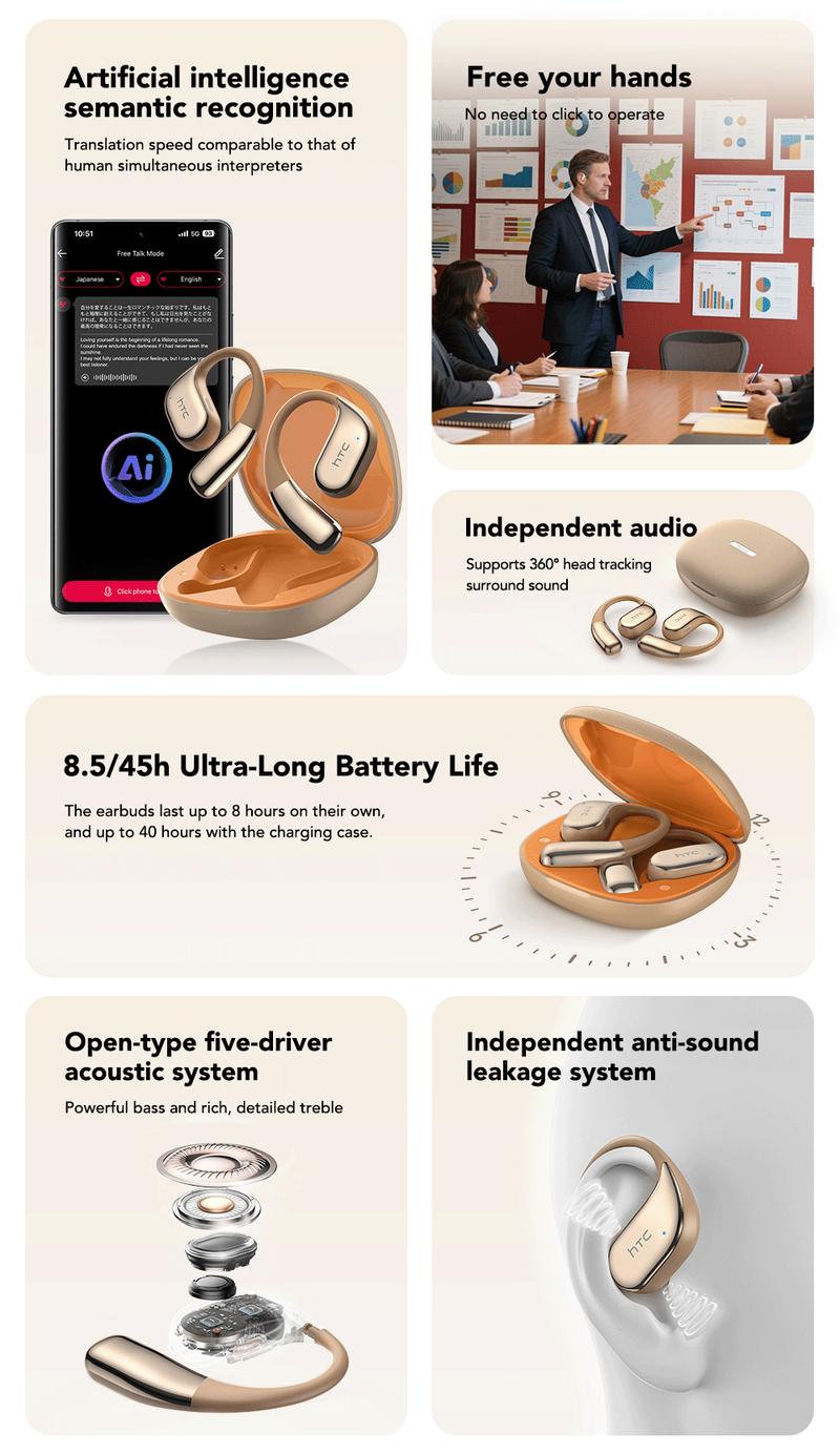 Stay connected anytime with the HTC NE39 OWS Bluetooth 6.0 Translator Headset. IPX5 waterproof, lightweight, and comfortable to wear—ideal for work, sports, studying, and clear voice calls. Comes with a 3-month warranty.