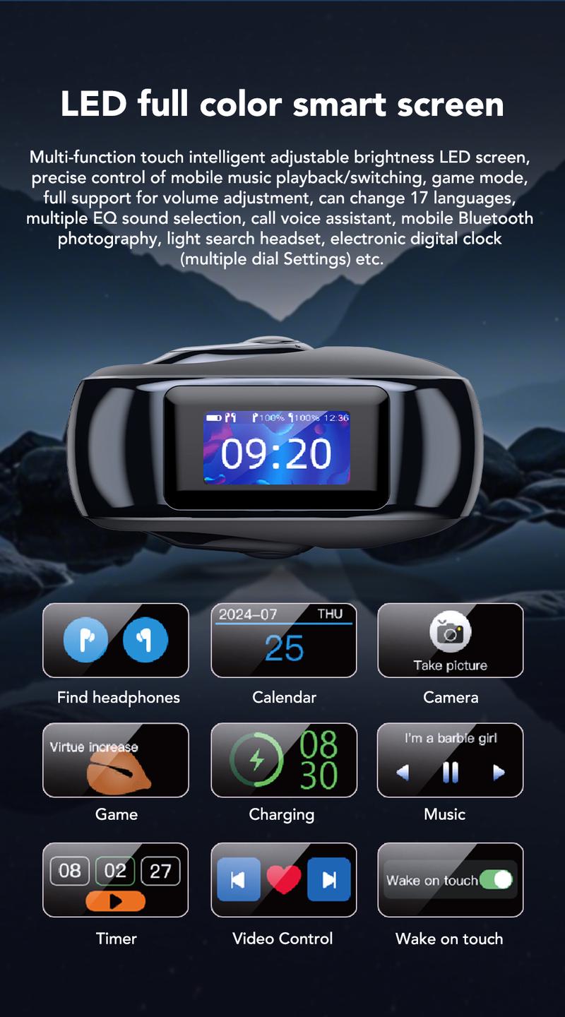 Full-Color LCD Display – Stylish charging case with real-time battery and status updates.