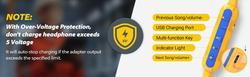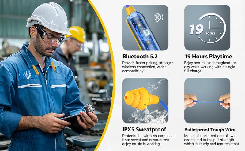 - 【19+ Hours Battery with Smart Charging Protection】 Power through your workday with up to 19 hours of continuous use,perfect for construction workers with long shifts. A 220mAh battery keeps the music or calls going, while built-in over-voltage protection stops charging when needed—safe and smart for any worksite.