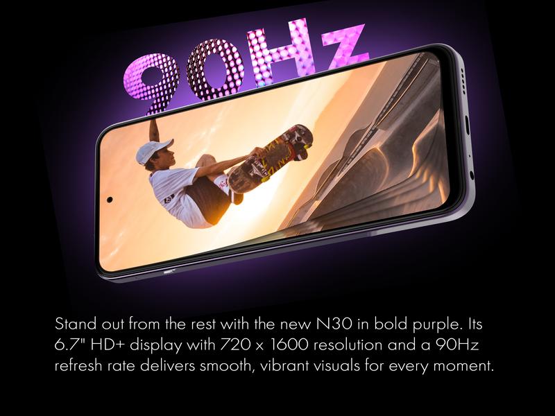 NUU N30 Unlocked Smartphone – 12GB RAM (6GB+6GB Extended), 128GB Storage, Dual SIM 4G, 6.7" 90Hz HD+ Display, Purple