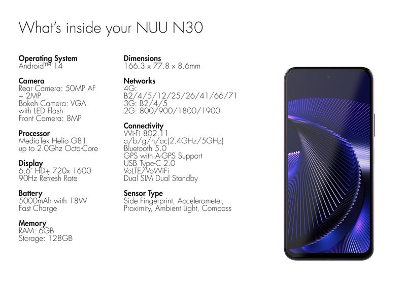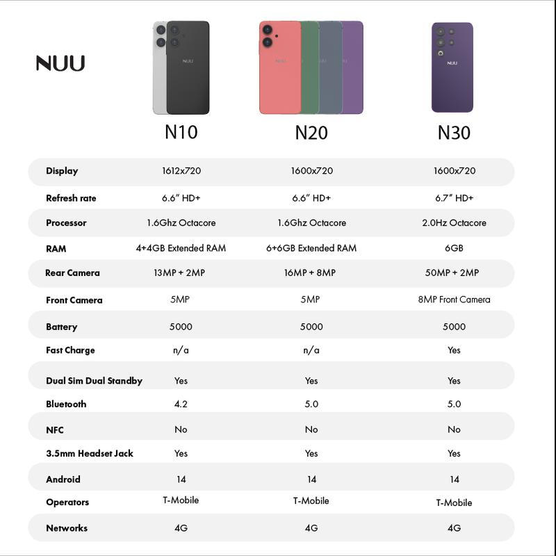 Stay connected and enjoy smooth performance with the NUU N30 unlocked cell phone. Featuring 12GB RAM (6GB+6GB extended), 128GB storage (expandable via MicroSD), and a 6.7” 90Hz HD+ display, this Android smartphone is perfect for teens, daily use, and entertainment.