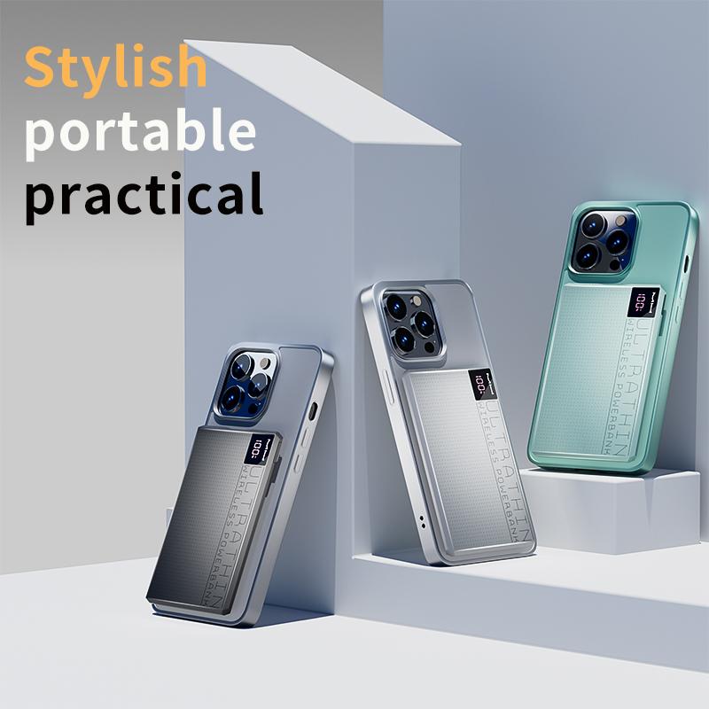 Slim 5000mAh magnetic power bank with PD 18W fast charging, heat-free protection, and real-time digital display. MagSafe compatible for iPhone and other wireless devices.