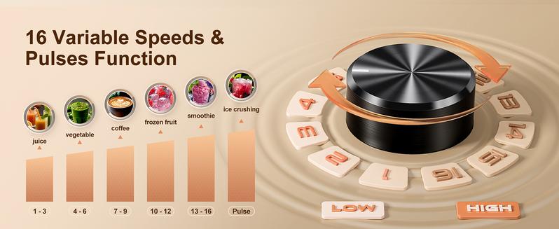 [Variable Speed & Pulse Function]: The Countertop Blenders are furnished with variable speed switch and pulse options with flexible manual control, catering to your specific preference for food texture. Professional blender provides the refinement of breaking down ice,frozen fruit,whole friuits or vegetables,and grains and full authority over the consistency of your beverage, ensuring that every food texture is flawless.