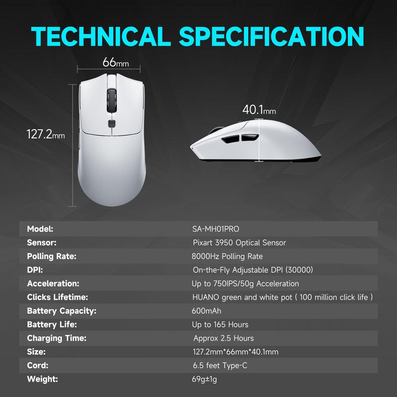 RAWM MH01 PRO 8K Wireless Gaming Mouse – PAW3950, Nordic 52840, 30000DPI, 165H Battery, Esports & FPS, 8K Dongle Included