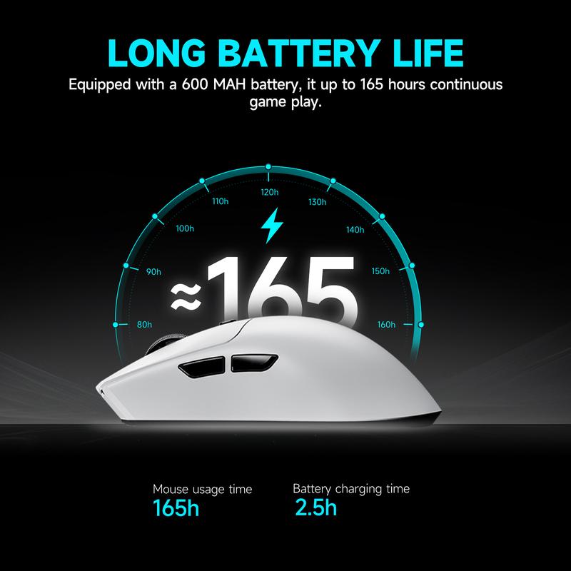 High-performance 8K wireless gaming mouse with ultra-low latency, 30000DPI, and 165-hour battery life. Ideal for esports, FPS gaming, and precision control.