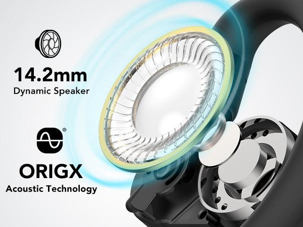 With the innovative biaxial rotation design, you can adjust the angle of the earbuds in two ways to suit your preferences and needs, and the open-ear design allows you to enjoy music while remaining aware of your surroundings. The 14.2mm large dynamic driver units deliver pure and high-quality sound with powerful bass.