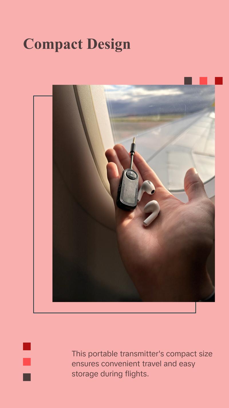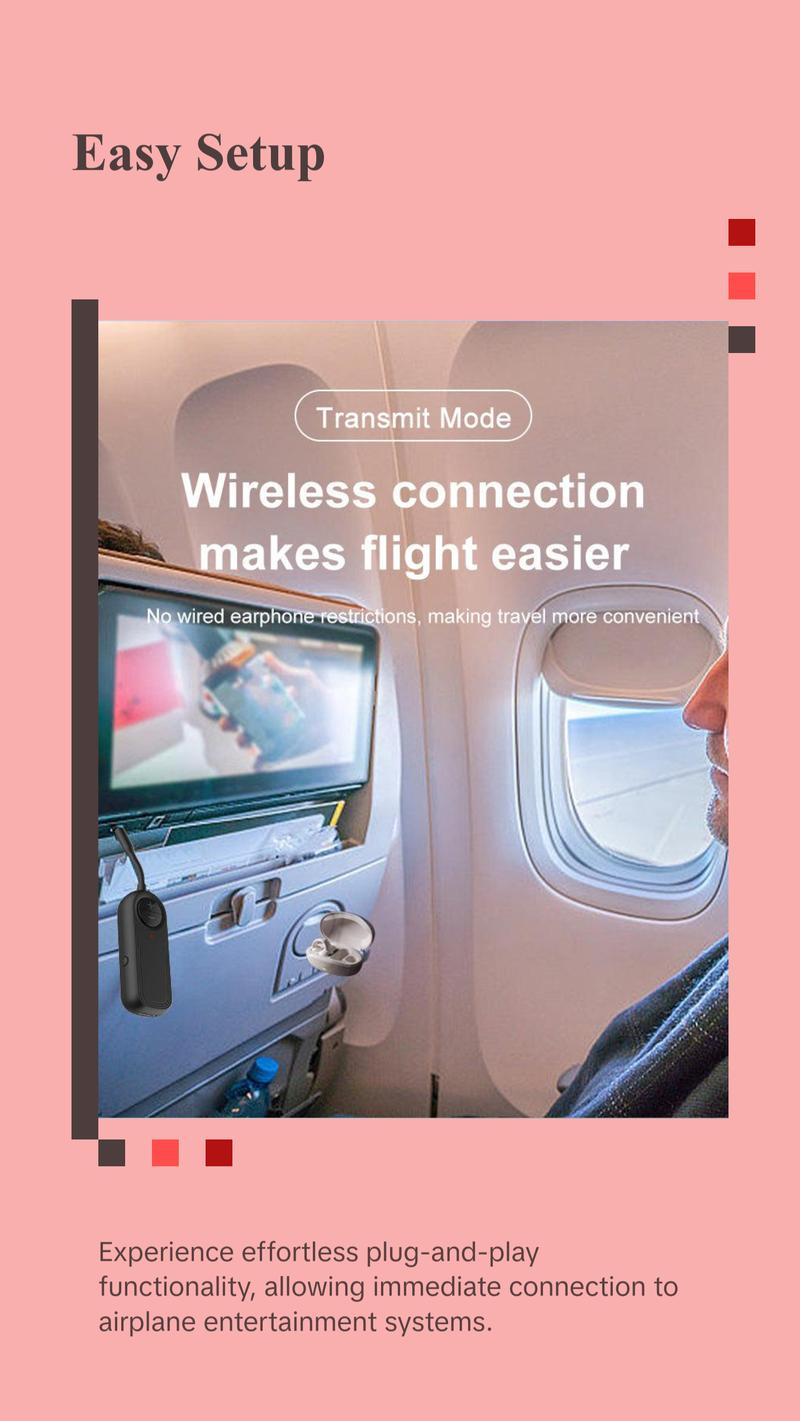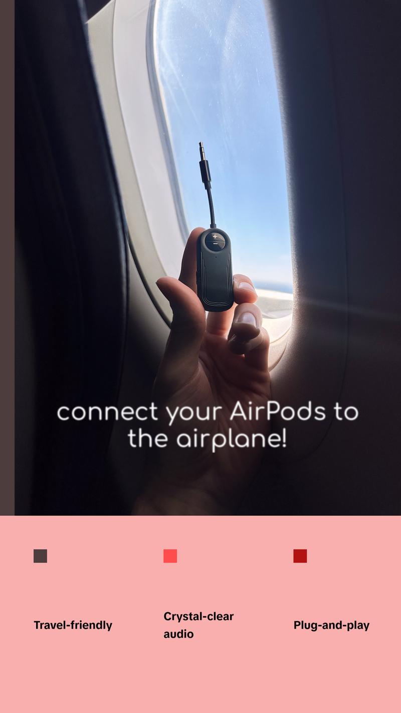 Our sleek, portable transmitter seamlessly connects to the airplane screen, transforming it into your very own entertainment hub. With no complicated setup or adapters required, you can simply plug in and start enjoying your favorite movies, music, and podcasts through your AirPods or Bluetooth headphones. Features: • Effortless plug-and-play setup. • Compact and portable design for travel convenience. • Compatible with AirPods and most Bluetooth headphones. • Crystal-clear audio transmission for uninterrupted enjoyment. What’s Included: • Bluetooth Transmitter. • User Manual. • USB Charging Cable.