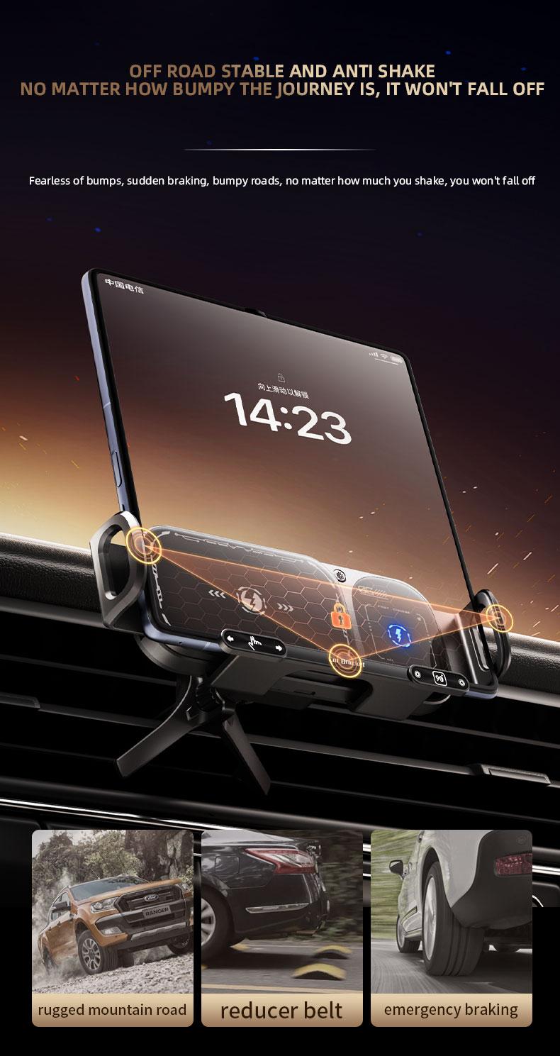 Smart Auto-Clamp Technology – Built-in infrared sensors automatically open and close the holder, securing your phone instantly.