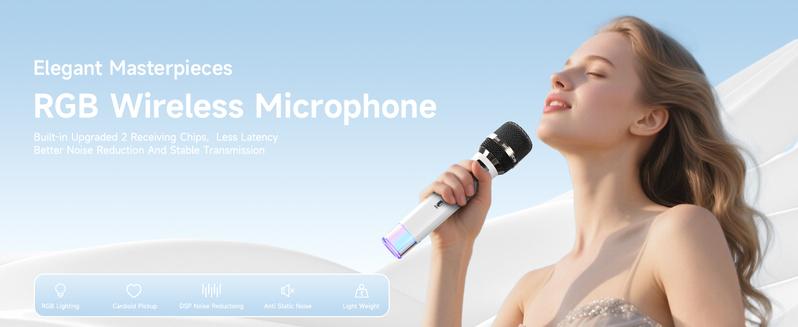 Sing, speak, and perform with confidence using our upgraded Wireless Microphones. Featuring one-to-one chip connection, 200Ft range, gradient RGB lights, and 40-hour battery life, these karaoke mics are perfect for parties, events, and streaming.