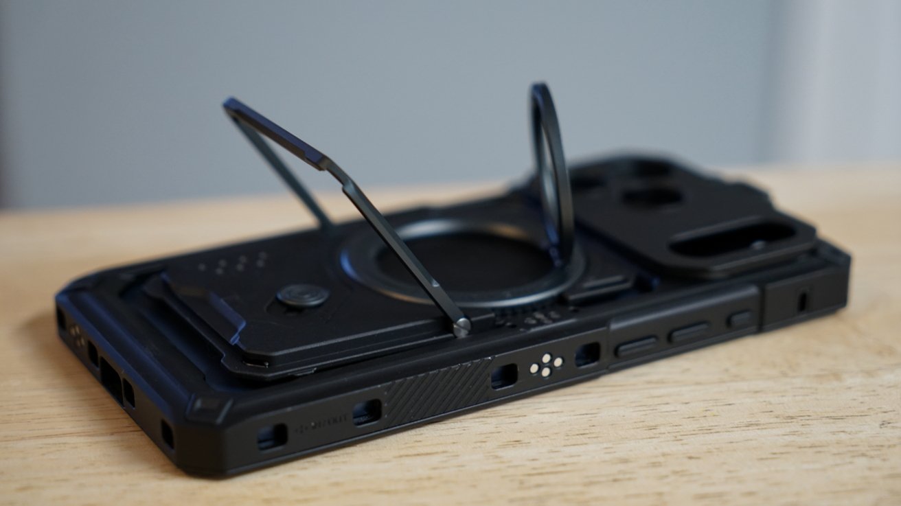 Pelat belakang tambahan yang terkunci di tempatnya melalui MagSafe juga mengalami beberapa peningkatan. Penyangga menjadi jauh lebih kokoh, dan cincin di bagian belakang dapat dilipat untuk pegangan dan bahkan dapat dilepas.